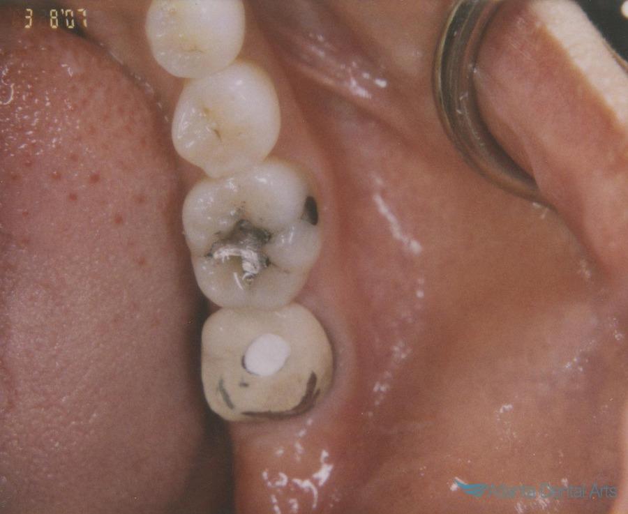 Posterior composite fillings( white fillings on back teeth) The same type of filling material used to do bondings and fillings on front teeth can be used to fill back teeth. Traditionally, Amalgam fillings were considered the only choice for fillings on back teeth. These fillings are the greyish fillings you see in other people’s mouths, or may have in your own. They are made primarily of mercury and silver. Now, many dentists like myself use tooth colored or composite fillings, and are having great success with them. Over the years there has been much controversy over amalgam verses composite fillings, but I have made the choice for a variety of reasons to not use amalgam in my practice. Here are some examples of fillings I have done with composite. Crowns and composite fillings were used as the restorative options in two of these cases. I will explain which ones are crowns and which ones are fillings under the individual cases.